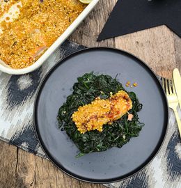 Lachs mit Mandelkruste auf Spinat